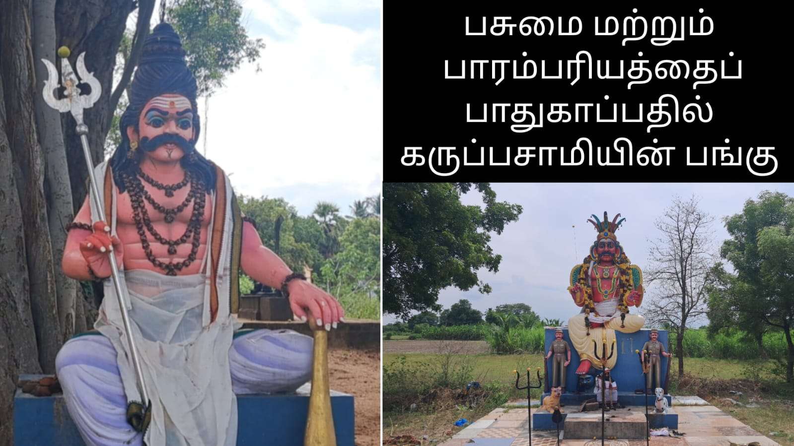 நாம் கிராமங்களுக்குள் நுழையும்போது, ஒரு பெரிய ஆலமரத்தின் கீழ் முறுக்கப்பட்ட மீசையுடன், கையில் அரிவாள், கண்களை உருட்டிக்கொண்டு குதிரையில் சவாரி செய்வது போல ஒரு சிலையைக் காண்கிறோம், அது என்ன?, அதன் பின்னணி? அது ஏன் அமைக்கப்பட்டது? அதற்கும் நமது பசுமைக்கும் பாரம்பரியதிற்கு என்ன சம்பந்தம்?